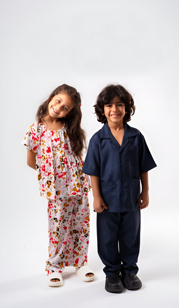 بيجامة الملكة المصنوعة من الكتان المصري بنقش رسومات - خامة ناعمة وستايل مميز وكم طويل