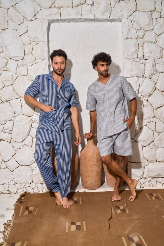طقم رجالي من الكتان (قميص + سروال)