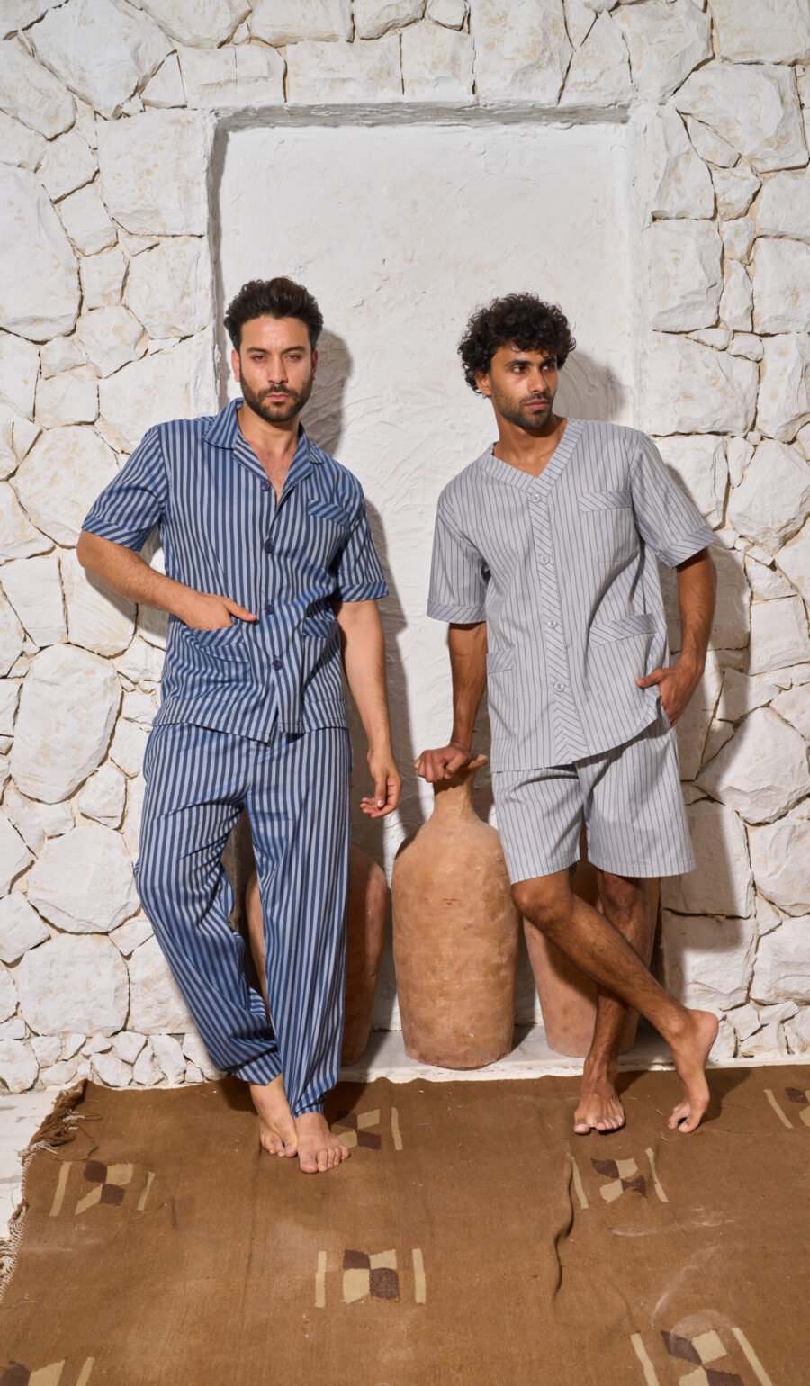 جلابية رجالي بيتي مقلمة رقبة مثلثة