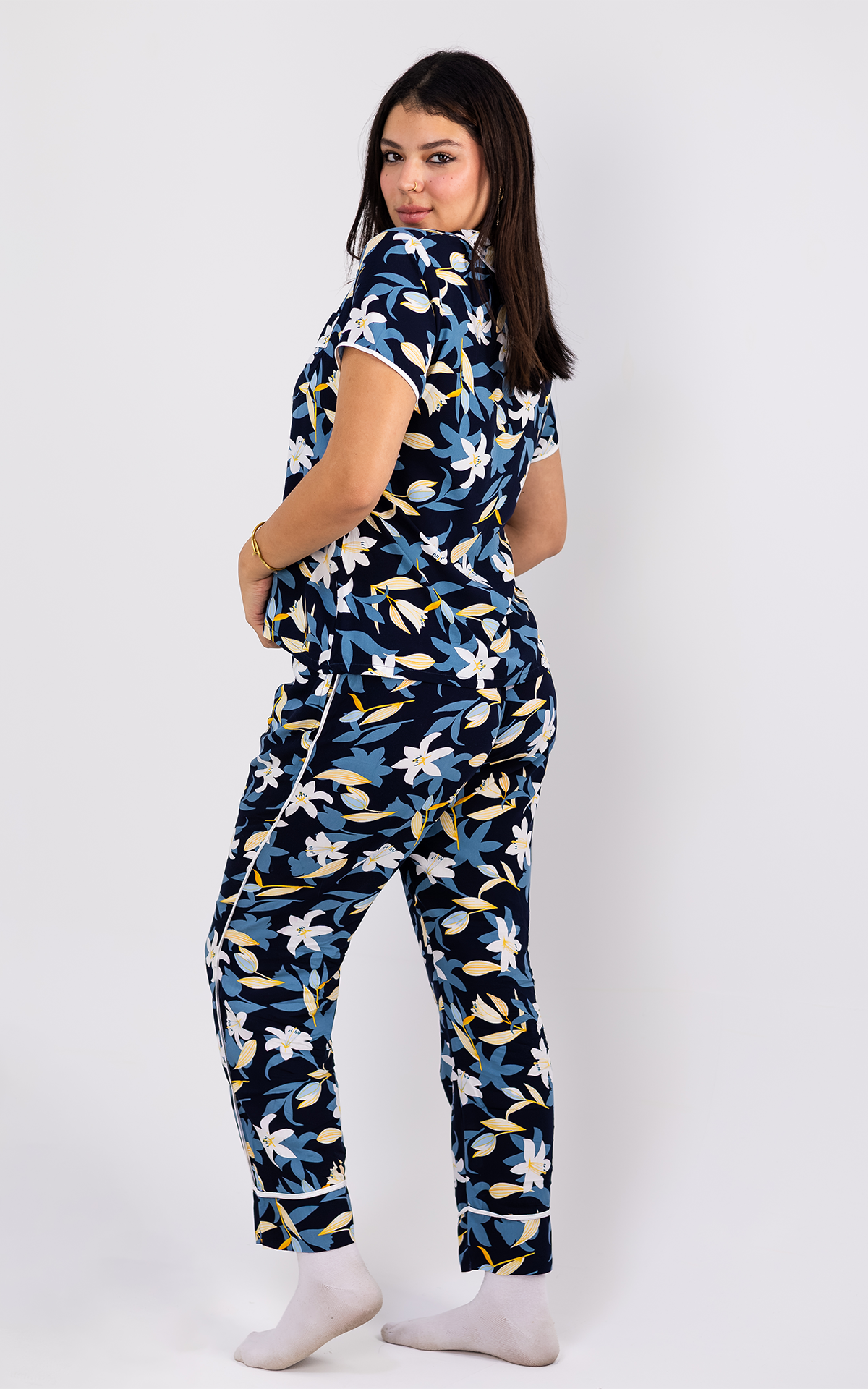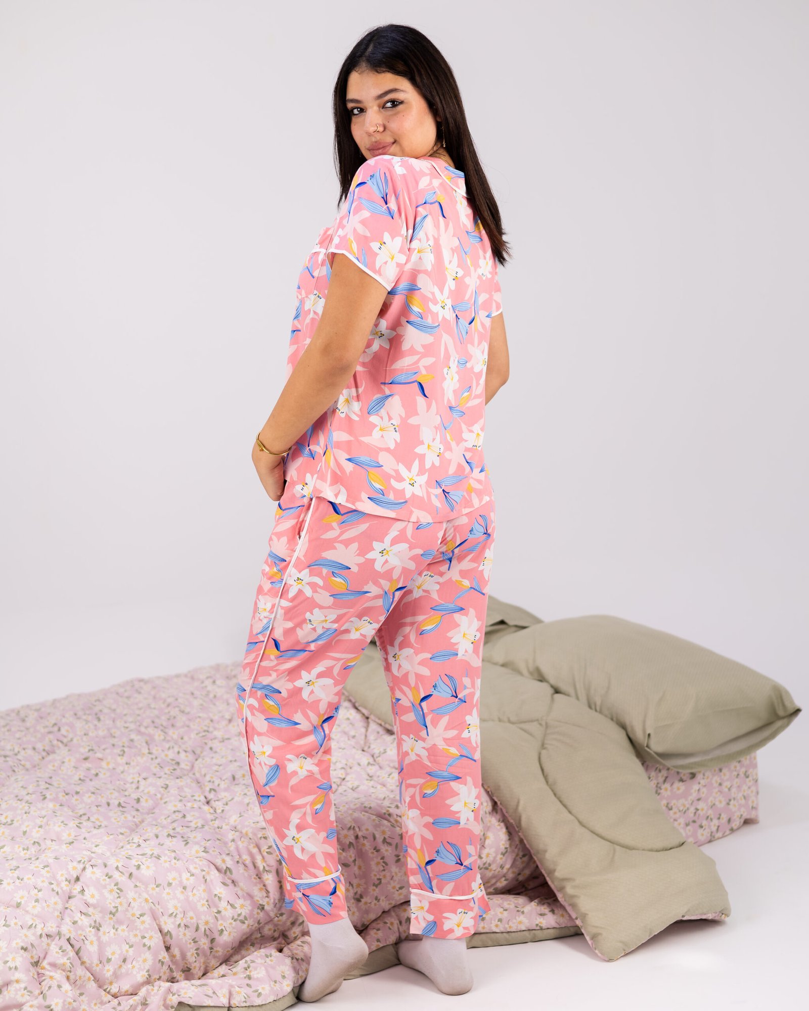 بيجامة الملكة القطنية المزخرفة بالزهور الزاهية