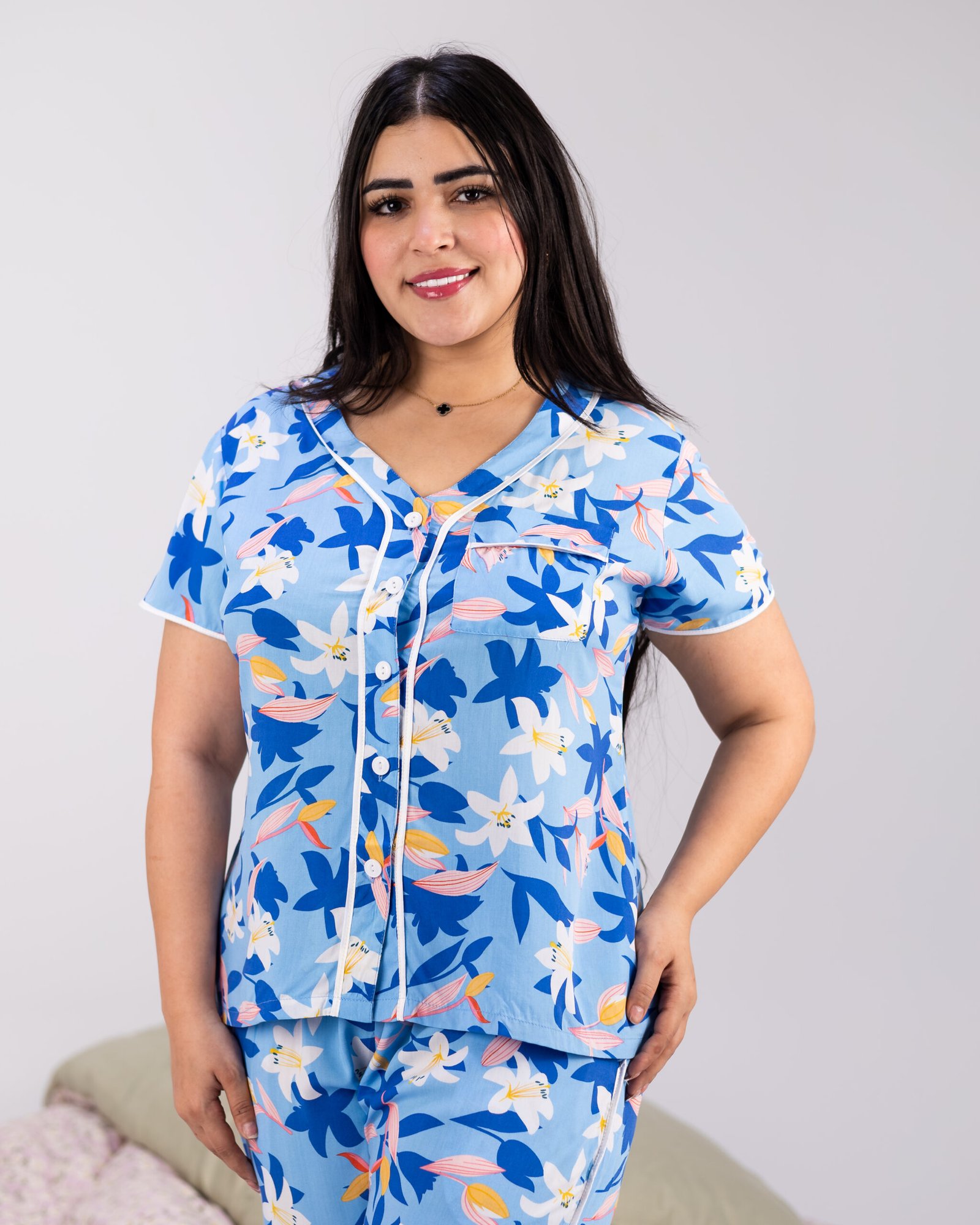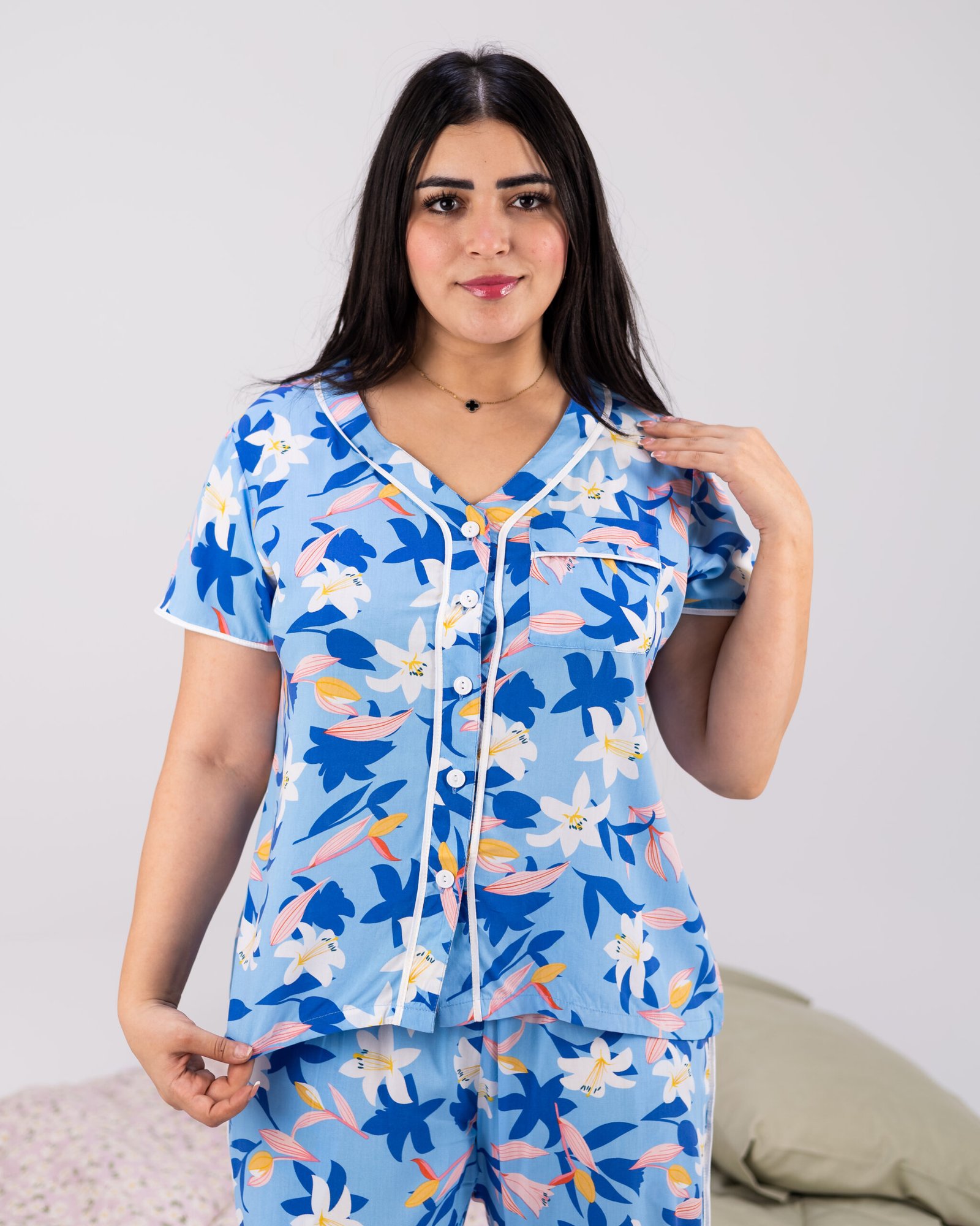 بيجامة نسائية ناعمة مصنوعة من القطن المصري الفاخر تمنحك إحساسًا بالفخامة والراحة.