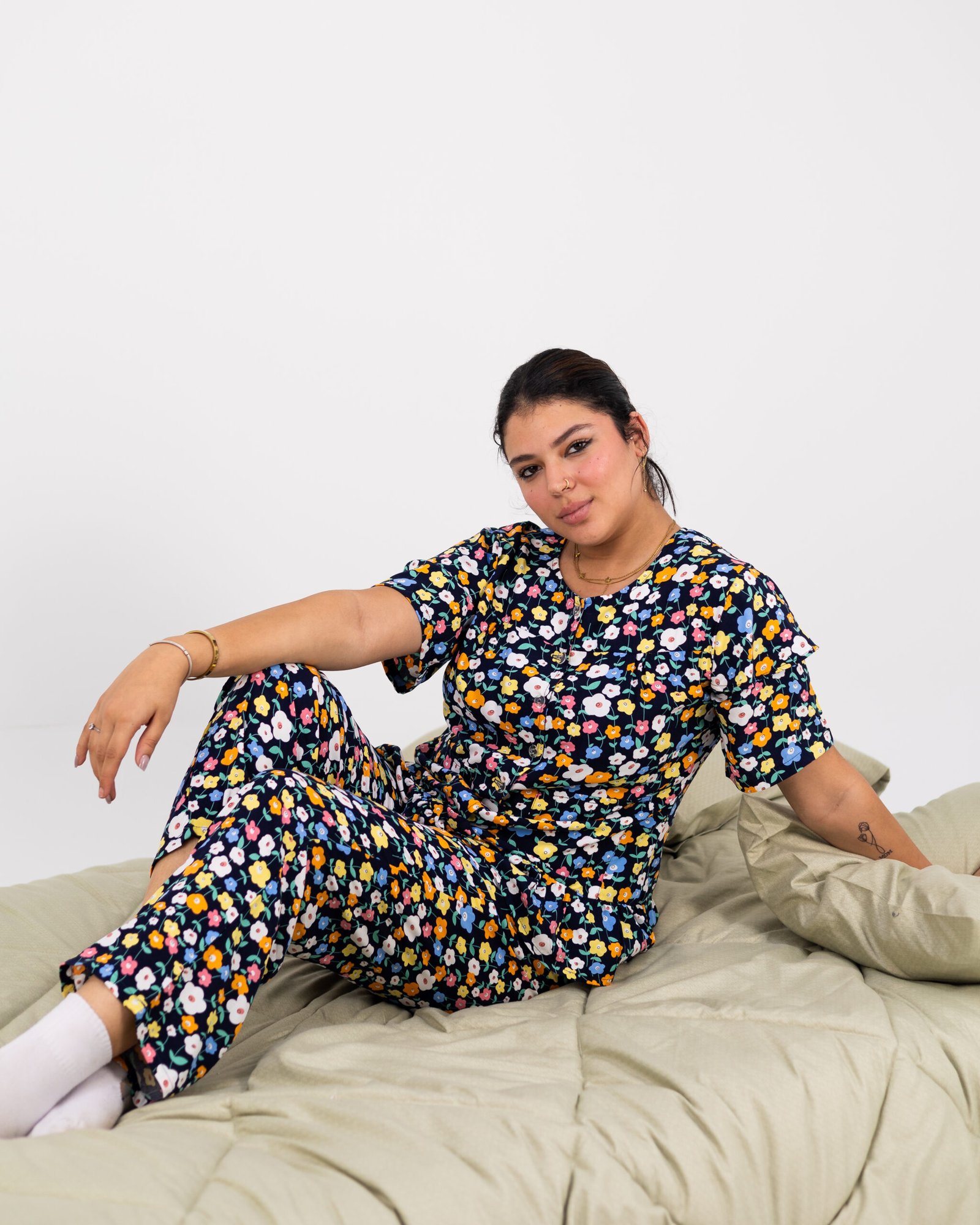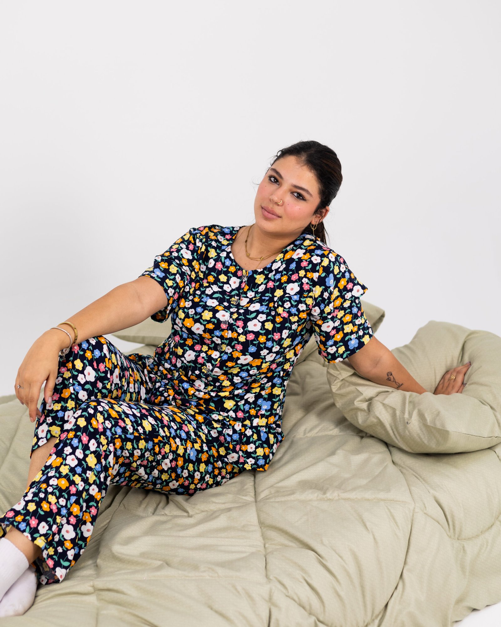 بيجامة الملكة ذات خامة ناعمة ولطيفة من القطن المصري - نقشة الزهور