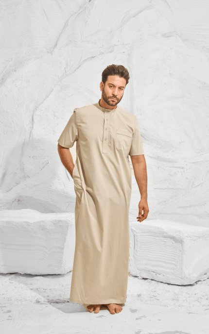Enjoy ultimate comfort with our Egyptian cotton men's home Jalabyia. A timeless design that blends luxury and simplicity.