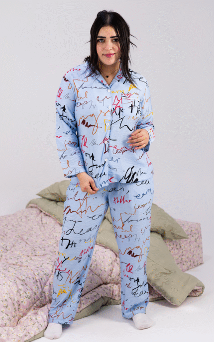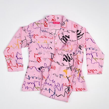 Queen’s Linen Pajama Set Handwritten – Soft & Stylish Full Sleeve