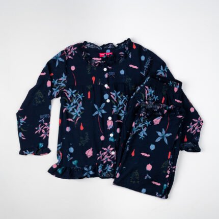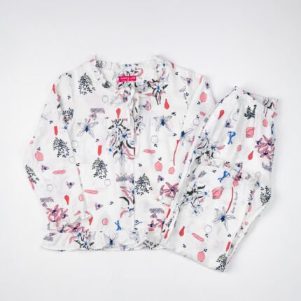 Queen’s Floral Linen Pajama Set – Soft & Stylish Full Sleeve