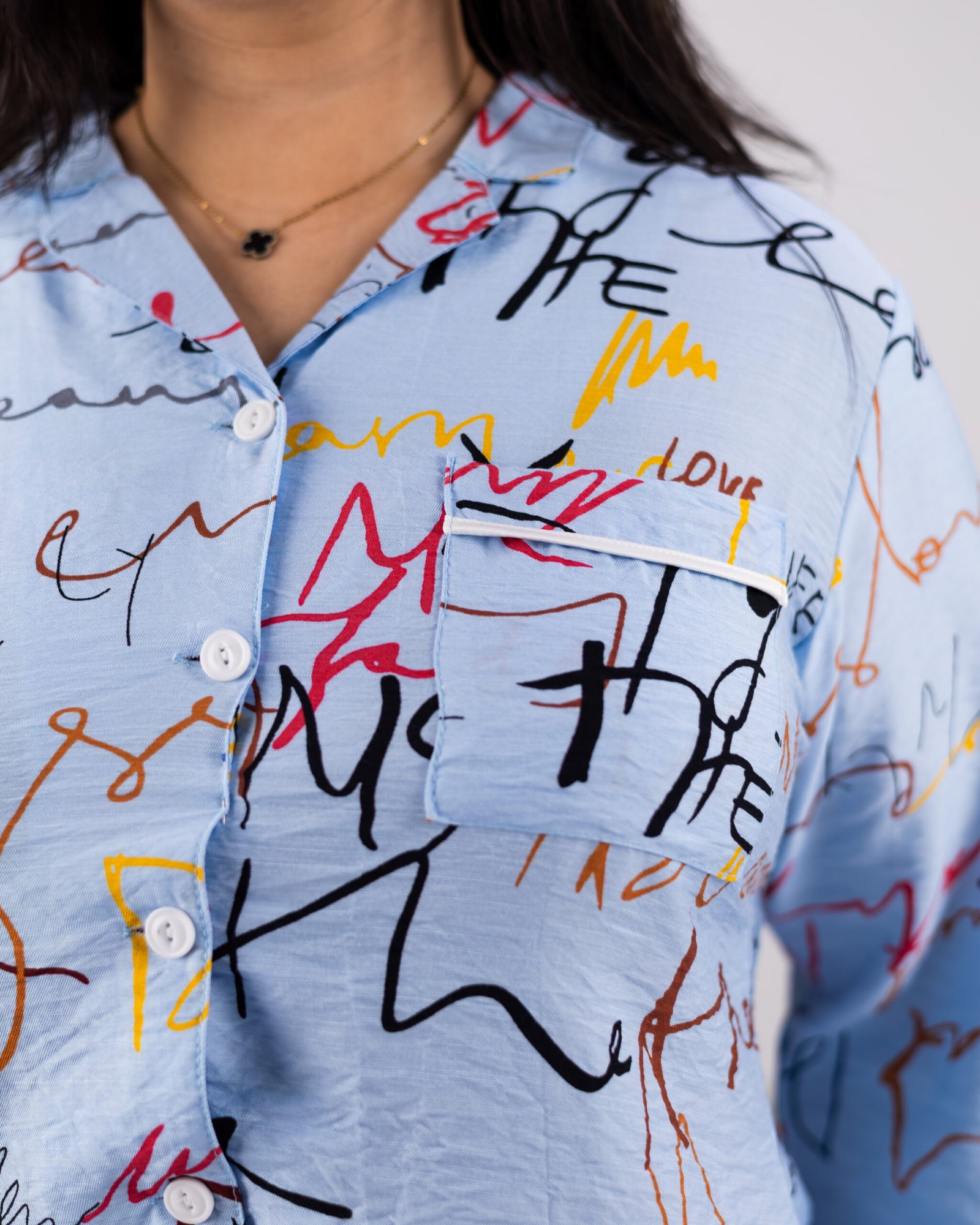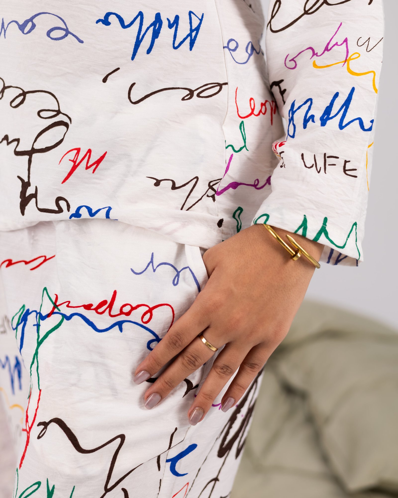 Queen’s Linen Pajama Set Handwritten – Soft & Stylish Full Sleeve