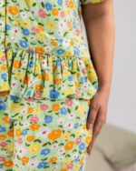 Princess's Floral Linen Pajama Set – Soft & Stylish Full Sleeve