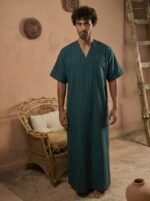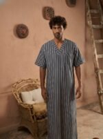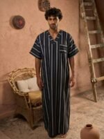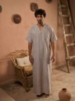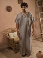 Be the first to review “Striped V neck jalabiya” Cancel reply
